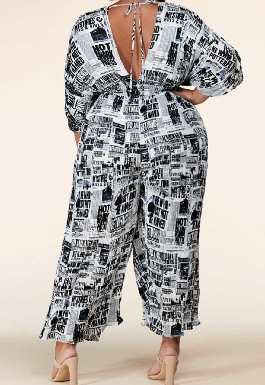 Plus Size Black and Oversize White Newspaper Print Jumper